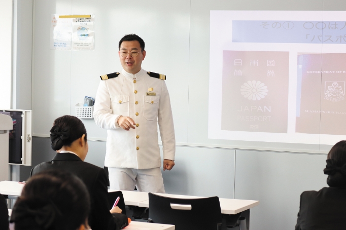 クルーズの歴史や業界の構造、クルーズ会社、商品、船内サービス、職種、国際的な運航ルールなどを体系的に学び、クルーズ船で働くための基礎知識を学ぶ。